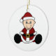 A baby dressed in a Santa suit and stocking cap on an ornament you can easily customise with your own text before ordering.
