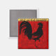 Modern and traditional illustration with a black silhouette of a Rooster and ornate red lettering as background + Year of the Rooster onto a small golden band. Design on square refrigerator magnet. Available with another design with the same lettering. Matching greeting card, postage, red envelopes and lot of other products for New Year and Birthday (people born in Rooster year)... -------- "The Rooster (simplified Chinese: 鸡; traditional Chinese: 雞/鷄) is one of the 12-year cycle of animals which appear in the Chinese zodiac related to the Chinese calendar. The Year of the Rooster is represented by the Earthly Branch character 酉. The name is also translated into English as Chicken. Rooster is the only bird included in the Chinese zodiac. People born within these date ranges can be said to have been born in the "Year of the Rooster", while also bearing the following elemental sign: