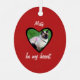 Pay tribute to a cat, dog or other pet, whether celebrating a living friend or as a pet memorial. This fun ornament is in the shape of a t-shirt with a heart-shape cut-out for you to add your pet's photo. Personalise by changing the example name to the name of your cat (or other pet). The slogan beneath the photo reads "In my heart".