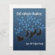Traditional design: Santa's sleigh is pulled through a snowy night sky by four strong reindeer. Customise your Christmas greeting and signature.