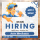 Customise Generic Now Hiring Auto Mechanic Window Cling