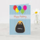 Happy birthday with a lucky owl card, colourful balloons, lovely owl, red, yellow, blue, green, pink, purple, customise happy birthday card. Write recipient's name and wish message you want.