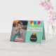 Happy birthday with a lucky owl card, colourful balloons, red, yellow, blue, green, pink, purple, customise happy birthday card. This product is only intended to be purchased once sample photos are replaced with your own images.