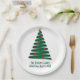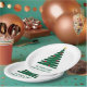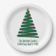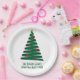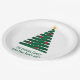 Bright green modern graphic Christmas Tree design is the centre focus of this Christmas party paper plate. Customise it with your text and date.