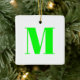 Customise monogram initial neon green, white Christmas Ceramic Ornament