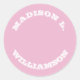 Customise Name last name curved letters Pink white Classic Round Sticker