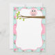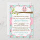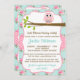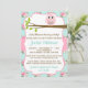 This is a pretty baby shower invitation that features an owl in pink sitting on a branch. You can customise the invitation to change the name, date and place of the shower. Change the font, size, colour and style to suit your preferences. The back has been left blank for any additional information you might like to add.