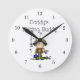 I bought the clock as a 'first time' grandmother. When I opened the package, I cried. the workmanship, material, color and the opportunity to personalize it was just perfect. I know that my grandson will be able to quickly learn to identify numbers, count and tell time! What a keepsake! I was totally happy with the printing, color choice and overall presentation of the clock!