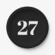 Customise w/Initial White Letter Number Black Paper Plate