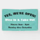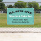 Business is OPEN! Bring your customers back! Indoor/Outdoor banner for large and small businesses. Let your customers know that you are ready for their business. Customise the text with your business hours, days open, etc. Take out only can be customised. Add your Phone Number, etc.