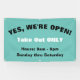 Business is OPEN outdoor banner for large and small businesses. Let your customers know that you are ready for their business. Customise the text with your business hours, days open, etc. Take out only can be customised