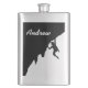 This sturdy 100% stainless steel pocket flask features an option to customise the name to your own or that of a loved one, or delete, or leave it as it is (currently Andrew) and a silhouette of a rock climber, by J.M.Tellam BA (hons). A quality gift for the rock climber or mountain guide in your life.