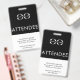 Elevate your conference experience with this customisable attendee name badge. Perfect for trade associations, this badge features ample space for your attendee's name, association name, and conference title and date or text of your choice. The black and white design is sleek and modern, with a customisable logo at the top. Make a great impression with this professional and personalised badge.