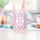 This customised monogramed pink and grey can glass is the perfect gift for any girl on your list. Whether for your bridesmaids, sister, mother, daughter, make it personal with a sweet, monogramed gift just especially for her. This design features a geometric pattern made feminine in a pink white and light grey colour scheme. Edit the template to add your letter and name. This design is fully customisable in the design tool and and can be transferred to other Zazzle products!
