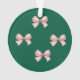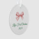 Commemorate the holiday with a personalised ornament. Featuring a pink bow design, the ornament adds a sweet touch to any tree.
