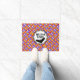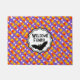 Welcome friends and trick or treaters with this Crazy Candy Corn on a purple background door mat! A spooky black bat flies by looking for something sweet to nibble on! You can personalise the text for your own clever message! Several shapes and sizes available.