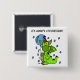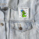 A green dragon with a blue birthday balloon and a party hat on a birthday button that's easy to customise with your own text.