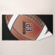 Bath Towel. Featured in a black background with a football and the player's name and number. The perfect gift for the sport enthusiast in your life. This design can also be made for a coach...just change the number to say "COACH" or anything else you would like. ✔Note: Not all template areas need changed. 📌If you need further customisation, please click the "Click to Customise further" or "Customise or Edit Design" button and use our design tool to resize, rotate, change text colour, add text and so much more. ⭐This Product is 100% Customisable. Graphics and / or text can be added, deleted, moved, resized, changed around, rotated, etc... ⭐99% of my designs in my store are done in layers. This makes it easy for you to resize and move the graphics and text around so that it will fit each product perfectly. 📌 (Please be sure to resize or move graphics if needed before ordering) You can also "TRANSFER DESIGN" on other Zazzle products and adjust the design to fit most of Zazzle items. (button is down on the right side of the page) This design is made with high resolution vector and/or digital graphics for a professional print. 📌NOTE: (THIS IS A PRINT. All Zazzle product designs are "prints" unless otherwise stated under "About This Product" on the left side of this page) The design will be printed "EXACTLY" like you see it on the screen and on the product...so please make sure when you do your changes on the resizing of any of the graphics or text that it fits in the areas correctly and that your spelling and wording is how you like it to be in size, colour and font. If you have any questions about the "DESIGN ONLY" or need help please contact me at ✉ siggyscott@comcast.net or visit my store link: https://www.zazzle.com/store/designsbydonnasiggy (Copy and Paste) I'll be happy to help. 📌 ALL OTHER QUESTIONS (shipping, refund, the printing, the product, etc...) please contact Zazzle or the Maker ⭐DIRECTLY⭐. Thank you for the support and stopping by my store - DesignsbyDonnaSiggy. © Donna Siegrist⭐⭐⭐ ZAZZLE promises 100% satisfaction. If you don't absolutely love it, Zazzle will take it back! ⭐⭐⭐ 1-888-8ZAZZLE (1-888-892-9953) Phone hours: Mon - Fri: 9AM - 5PM PT (12PM - 8PM ET)