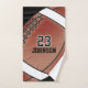 Hand Towel. Featured in a black background with a football and the player's name and number. The perfect gift for the sport enthusiast in your life. This design can also be made for a coach...just change the number to say "COACH" or anything else you would like. ✔Note: Not all template areas need changed. 📌If you need further customisation, please click the "Click to Customise further" or "Customise or Edit Design" button and use our design tool to resize, rotate, change text colour, add text and so much more. ⭐This Product is 100% Customisable. Graphics and / or text can be added, deleted, moved, resized, changed around, rotated, etc... ⭐99% of my designs in my store are done in layers. This makes it easy for you to resize and move the graphics and text around so that it will fit each product perfectly. 📌 (Please be sure to resize or move graphics if needed before ordering) You can also "TRANSFER DESIGN" on other Zazzle products and adjust the design to fit most of Zazzle items. (button is down on the right side of the page) This design is made with high resolution vector and/or digital graphics for a professional print. 📌NOTE: (THIS IS A PRINT. All Zazzle product designs are "prints" unless otherwise stated under "About This Product" on the left side of this page) The design will be printed "EXACTLY" like you see it on the screen and on the product...so please make sure when you do your changes on the resizing of any of the graphics or text that it fits in the areas correctly and that your spelling and wording is how you like it to be in size, colour and font. If you have any questions about the "DESIGN ONLY" or need help please contact me at ✉ siggyscott@comcast.net or visit my store link: https://www.zazzle.com/store/designsbydonnasiggy (Copy and Paste) I'll be happy to help. 📌 ALL OTHER QUESTIONS (shipping, refund, the printing, the product, etc...) please contact Zazzle or the Maker ⭐DIRECTLY⭐. Thank you for the support and stopping by my store - DesignsbyDonnaSiggy. © Donna Siegrist⭐⭐⭐ ZAZZLE promises 100% satisfaction. If you don't absolutely love it, Zazzle will take it back! ⭐⭐⭐ 1-888-8ZAZZLE (1-888-892-9953) Phone hours: Mon - Fri: 9AM - 5PM PT (12PM - 8PM ET)