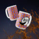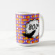 Now here's a cute funny colourful mug featuring the Crazy Candy Corn Black Bat Halloween Design. The message is Boo! but you can personalise the text. Nice "spirited" hostess gift or party favours, fill with a bag of cookies, or maybe candy corn!