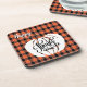 Customised HAPPY Thanksgiving Orange Buffalo Plaid Coaster
