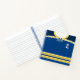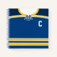 8.5" x 8.5" Spiral Notebook with laminated covers, and a choice of paper style, including sketchbook, ruled, half ruled, graph. The front and back of the notebooks have customisable jersey style designs, allowing you to add your own choice name and number to the back, and an 'A' or 'C' or number on the front, use the boxes to the right of the image to change the text.