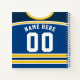 This design is an ice hockey / lacrosse style jersey in blue with navy blue and gold stripes and trim.