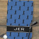Design features a repeating pattern of a solid black swinging golfer figure on a classic blue background. A thick black band has two small white accent stripes at the border and custom monogrammed initials (or short word) in white. Customise colours or keep as created. Colour of background and fonts are easily changed in design tool section. Email me at beachpausedesigns@gmail.com if you have questions about this or any of our designs!