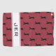 Design features a repeating pattern of a solid black swinging golfer figure on a dark red background. A thick white band has two small matching red lines at the border and custom monogrammed initials (or short word) in black. Customise colours or keep as created. Colour of background and fonts are easily changed in design tool section. Email me at beachpausedesigns@gmail.com if you have questions about this or any of our designs!