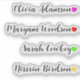 Spice up your life (and your laptop!) with our customised transparent long name stickers featuring adorable hearts. These aren't your grandma's stickers; these are sleek, modern, and totally customisable. Perfect for laptops, water bottles, journals – anywhere you want to add a touch of personalised flair. High-quality, durable vinyl ensures your name (however long!) stays vibrant and heart-shaped for ages. Express yourself with this trendy, aesthetic must-have! Get yours today and level up your personalisation game.