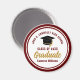 These modern maroon and gold custom graduation party magnets feature classy typography of your university or college name for the class of 2025. Customise with your graduating year next to the chic handwritten script and black grad cap for a great personalised congratulations graduate party favour.