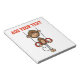 A stick figure monkey gymnast on the rings and text that is super easy to customise on a note pad that makes a great gift for the gymnast or coach you know!