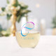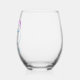 The artwork features the alphabet letter "C" in an artful script font of a colourful abstract design - extracted from a photo of spring plants captured using a special camera technique, along with customisable typography for name or other personalisation in blue font. Personalise this monogrammed stemless wine glass by adding the name or words of your choice to best suit your purpose or event!