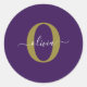 Customised Monogram Script Name Purple White Gold Classic Round Sticker