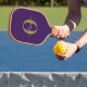 Customised Monogram Script Name Purple White Gold Pickleball Paddle