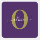 Customised Monogram Script Name Purple White Gold Square Sticker
