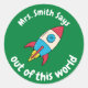 A cute Green Space Rocket Illustrated Out of this World Reward Sticker for teachers to award their student's progress in the cutest possible way. Teachers have the option to Customise it with their own name for a personal Touch. View the Collection for more.
