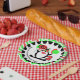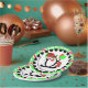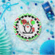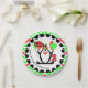 Customised Penguin 2nd Birthday paper plates, great for the penguin theme birthday celebration or great for kids who just love penguins and are two years old! Features a penguin wearing a coral and lime green party hat holding balloons of the same colours, text that reads I'm 2, a border with black decorative ring and chevron stripes of coral, white, and lime green, and has an area you can customise with a thank you message to your guests or any other text message you choose!