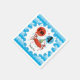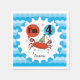 Personalised Red Crab 4th Birthday paper napkins, cute and colourful, great for any ocean or sea theme birthday party, features a red crab in a polka dotted party hat holding red and blue balloons surrounded by confetti! These ocean red crab paper napkins have a border of blue waves and text that reads I'm 4! You can easily add the birthday child's name to personalise these fourth birthday red crab napkins. We have the matching crab 4th birthday paper plates, T-shirts, and more!