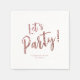 Faux rose gold sparkle glitter "let's party" script in centre, simple and stylish, great customised napkins for bachelorette party, birthday party, holiday party, home party, or any special occasion.