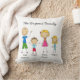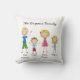 American MOJO throw pillow featuring a stick figure dad, mum, boy, and a girl with areas where you can add their names and family name!
