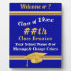 Fully Customizable, Class Reunion Sign, Easel Plaque. You, or CALL Designer Linda: 239-949-9090 ET to CHANGE the PRODUCT, COLORS and DELETE any or all TEXT and DESIGN LAYERS. Only I, Designer Linda, can CHANGE the Gold Graduation Cap and Lines/Borders. You or I can TRANSFER this Reunion Plaque Design to over 1000 other, Class Reunion Party Supplies, Decorations, Class Reunion Signs, Gifts and more. Class Reunion Welcome Sign, Sign in instructions or YOUR MESSAGES and COLORS. See brief INSTRUCTIONS Below on How to make CHANGES.