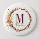 Customizable Floral Monogram Autumn Foliage 10 Cm Round Badge