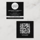 Create a clean and professional look with this customizable black and white business card. The front features space for your business logo, giving your brand a bold first impression. Easily personalize all of your contact information, including your name, job title, website, email, phone number, or social media handle. Also features a QR code on the back for your customers to scan to visit your website.