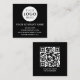 Create a clean and professional look with this customizable black and white business card. The front features space for your business logo, giving your brand a bold first impression. Easily personalize all of your contact information, including your company name, website, phone number, or social media handle. Also features a QR code on the back for your customers to scan to visit your website.