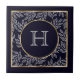 Gorgeous Customizable Monogram Navy Gold Decorative Ceramic Tile. Features beautiful leaf pattern over dark midnight navy blue with customizable pale gray monogram in a gold colored accent frame. We invite you to visit our Zazzle store, Simon & Grace, to view matching products and more. Please contact us if you require any assistance.