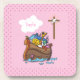Customizable Noah’s Ark Baptism, Girl Pink Coaster