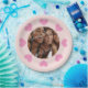 Customizable Pink Heart Photo Paper Plates. You can easily change the font, font size, colour to match your style.