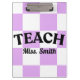 Customizable Purple Checkered Teacher Clipboard