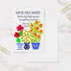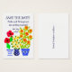 A colourful, chic Save the Date card for you to personalise, with three pots, full of colourful flowers, from a handpainted paper collage by Judy Adamson